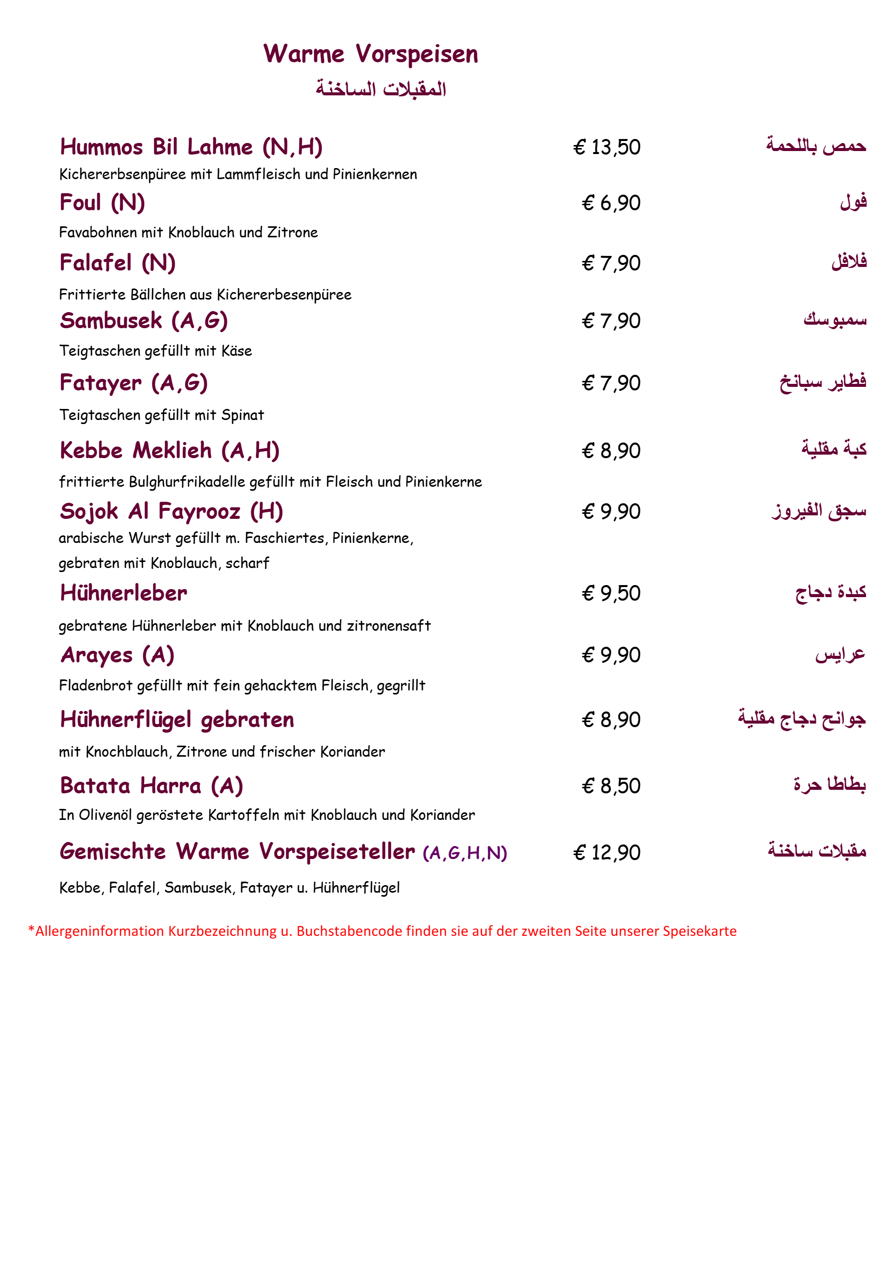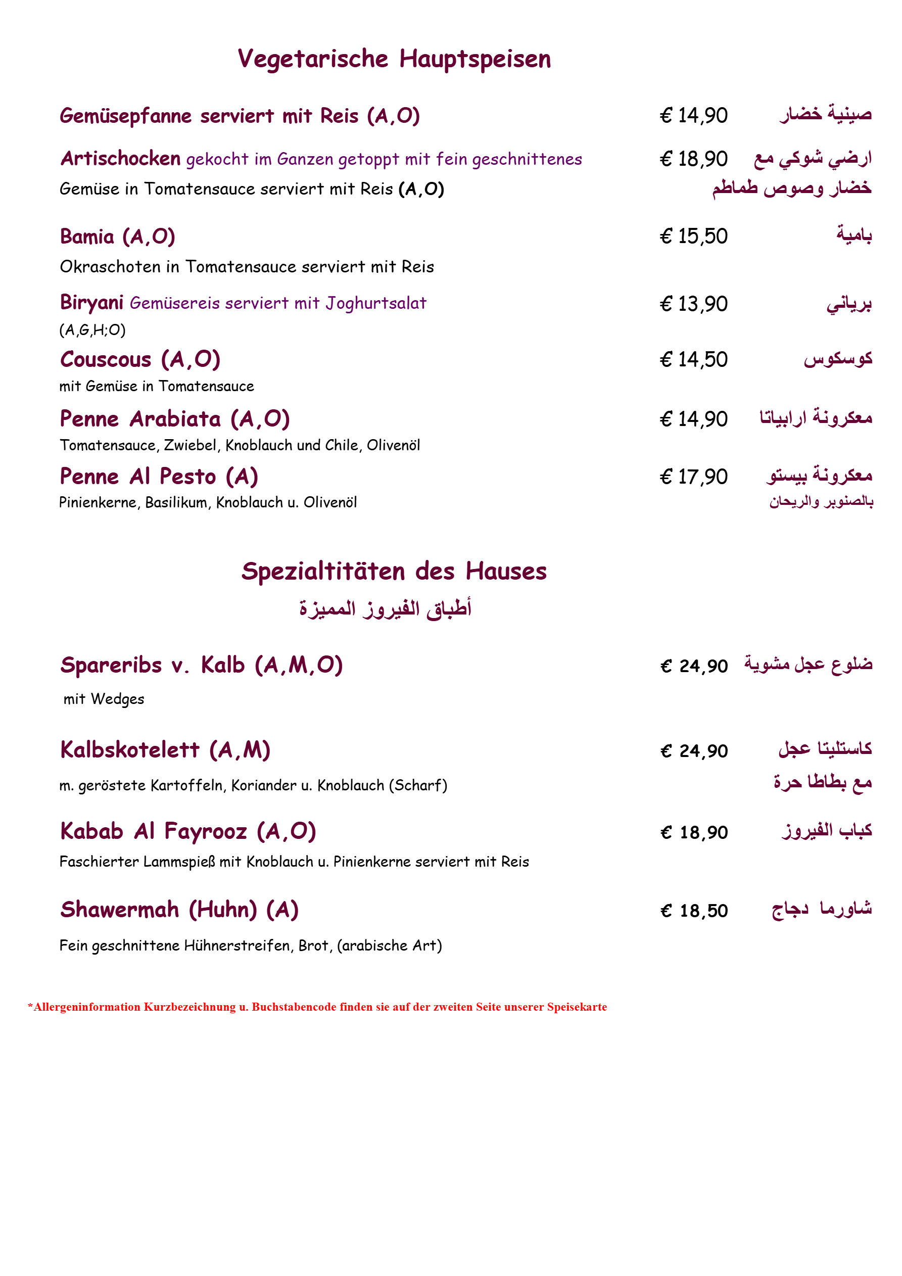 لأكثر من 30 عامًا، يُبهِر الفيروز ضيوفه بالمأكولات اللبنانية الأصيلة، المستوحاة من الأناقة الخالدة لحجر الفيروز. يشتهر مطعمنا بأطباقه التقليدية الطازجة وأجوائه الدافئة والترحيبية، مما يجعله وجهة مفضلة لعشاق الطعام. زورونا في فيينا لتجربة النكهات الفريدة للبنان، حيث نتميز بمأكولاتنا عالية الجودة ووصفاتنا التقليدية والضيافة اللبنانية الأصيلة.